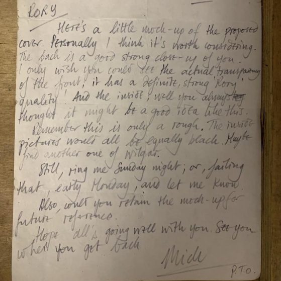 The legendary photographer passed away yesterday, our deepest condolences to his family and friends. Mick and Rory struck up a friendship at the beginning of Rory’s solo career, with Mick shooting the covers of Rory’s first three albums. See also a letter from Mick to Rory about his mock up for the Live In Europe album artwork and a negatives from the Deuce album sessions.