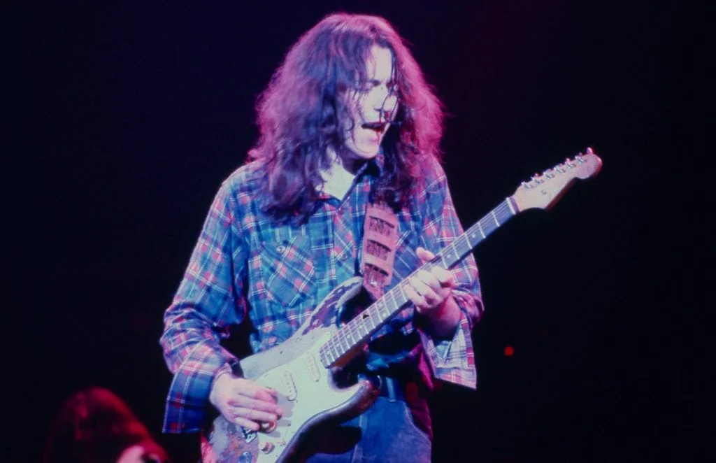 As a pre-teen growing up in 1950s Cork, in a home with no record player, the single-minded determination that would hallmark Rory’s career quickly became apparent. The discovery of Elvis and early rock n rollers lead him to seek out blues masters on American Forces radio such as later collaborator Muddy Waters. “The more I heard, the more I got addicted!” he later recalled. Rory was already a local, talent show-winning star when the first down payment was made on the celebrated 1961 Sunburst Fender Stratocaster that would – its paintwork stripped by his own highly alkaline sweat – become a lifelong totemic tool of his trade.